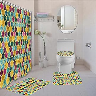 €36,72Produkt kaufenZDDWLDL 4Pcs Duschvorhänge Set Mit Rutschfesten Teppichen,Toilettendeckel und Badematte Kreative Fischschuppen Grün Gold…