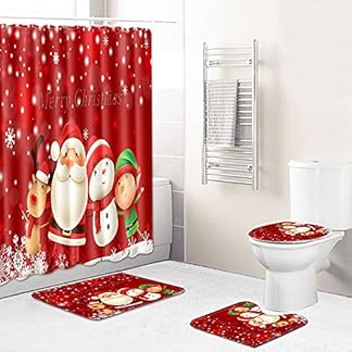 €36,72Produkt kaufenZDDWLDL 4Pcs Duschvorhänge Set Mit Rutschfesten Teppichen,Toilettendeckel und Badematte Rot-Grün-Weiße Weihnachtsmann…