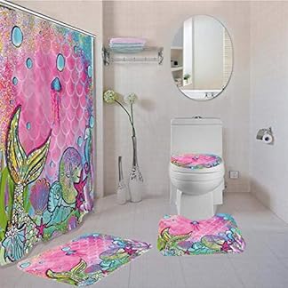€36,72Produkt kaufenZDDWLDL 4Pcs Duschvorhänge Set Mit Rutschfesten Teppichen,Toilettendeckel und Badematte Meerjungfrau-Mädchen Mit…