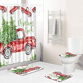 €36,72Produkt kaufenZDDWLDL 4Pcs Duschvorhänge Set Mit Rutschfesten Teppichen,Toilettendeckel und Badematte Weihnachtsbaumauto Weiß Grün Rot…