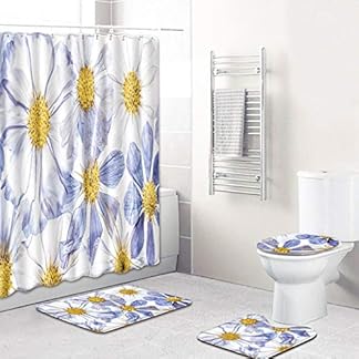 €36,72Produkt kaufenZDDWLDL 4Pcs Duschvorhänge Set Mit Rutschfesten Teppichen,Toilettendeckel und Badematte Weißblaue Goldene Blumen…