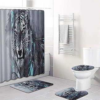 Boyouth Duschvorhang-Set mit Badematte, Konturvorleger, WC-Deckelbezug, 4 Stück