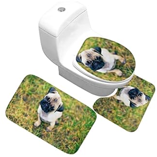 €22,18Produkt kaufen3 Teilig Badematte Set Weißer Mops 3D Badematten Set rutschfest, Badezimmerteppich,U-förmiger WC-Vorleger,WC-Deckelbezug…