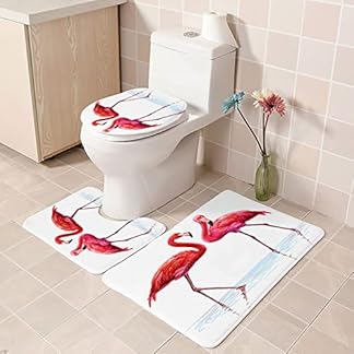 €22,18Produkt kaufen3 Teilig Badematte Set Weißer rosa Flamingo 3D Badematten Set rutschfest, Badezimmerteppich,U-förmiger WC-Vorleger,WC…