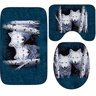 €28,17Produkt kaufen3 Teilig Badematte Set Weißer Wolfsmond 3D Badematten Set rutschfest, Badezimmerteppich,U-förmiger WC-Vorleger,WC…