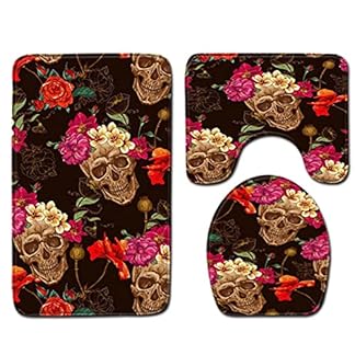 €24,69Produkt kaufen3 Teilig Badematte Set Totenkopf Blumen 3D Badematten Set rutschfest, Badezimmerteppich,U-förmiger WC-Vorleger,WC…