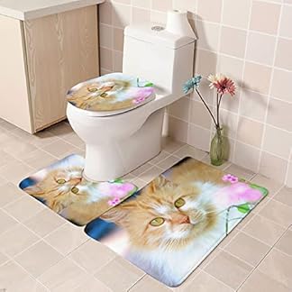 Badezimmer Teppich Set Weich Waschbar Badezimmerteppich 3 TLG rutschfeste Badeteppich WC Vorleger Deckelbezug U-förmige Konturmatte Memory Schaum Badezimmermatte ( Orange Tierkatze )