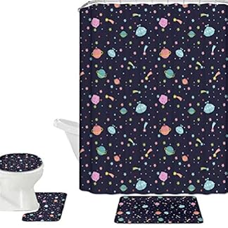 €50,91Produkt kaufenchaqlin Black Girl African Women Print Duschvorhang und Bad WC Vorleger Set 4 Stück Badteppich/WC Contour Matte/WC Deckelbezug Home Decor Planet Space-4