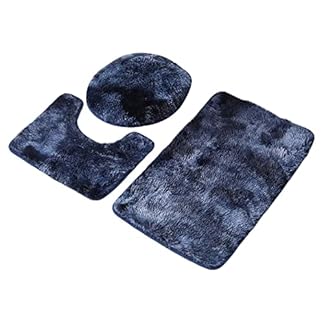 F Fityle Weiches, gemütliches, zotteliges 3-teiliges Badematten-Set, Toilettendeckelbezug, U-förmiger Konturteppich, waschbare, saugfähige, Blau