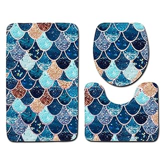 Highwonuk Badeteppich Set, Fischschuppen Toilettenteppich Set 3-teilig rutschfeste und weiche Badematten…