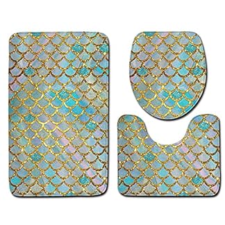 €8,98Produkt kaufenletsgotiger Badvorleger Set, Fischschuppen Toilettenteppich Set 3-teilig rutschfeste Badematten Toilettendeckel…