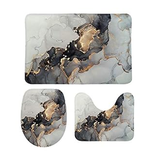 My Daily 3-teiliges Badezimmerteppich-Set, abstrakte Kunst, grau, goldener Marmor, moderne Konturmatte, WC-Deckelbezug…