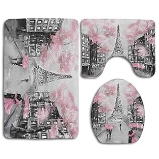 €33,99Produkt kaufenHuayuanhurug Art Paris Street Eiffelturm Pink Floral 3-teiliges Anti-Rutsch-Badteppich-Set für Badezimmer U-förmiger…