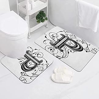 €14,66Produkt kaufen2-teilige rutschfeste Badematte,Buchstabe P Floral Swirls Essence Blooms Letters Barock inspirierter Initialen…