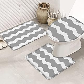 €16,99Produkt kaufen3 Teiliges Badteppich Set Abstrakte Geometrie Mit Grauen Streifen Und Wellen Anti-Rutsch Contour Badteppich Weiche Toilettensitzbezug Badgarnitur Matte