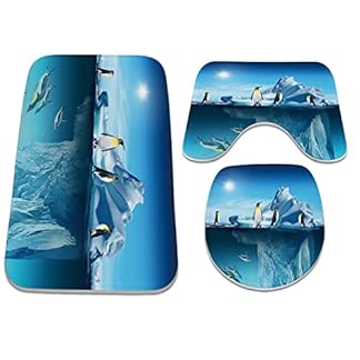 Antitarctic Animals Pinguin Badezimmer Teppiche und Matten Sets 3-teilig, Memory Foam Badematte, U-förmige Kontur…