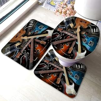 €22,89Produkt kaufenSet 3 Teilig Badvorleger Musikinstrument Gitarren Typ, Cooler Rock Stil Druck Konturmatte Weiche Badezimmer Matte, Für Wohnzimmer, Wc-Sitz Bezug