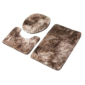 SM SunniMix Gemütliches Badezimmer-Teppich-Set, 3-teilig, mit Toilettendeckelbezug, Konturteppich, großes, wasserabsorbierendes, rutschfestes Badematten-Set für, Brown