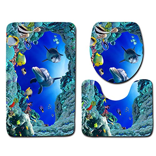 Leicht zu abwaschen und zu reinigen, kein Verblassen der Farbe, lange Lebensdauer. Das 3-teilige Set beinhaltet: eine Badematte, einen Konturteppich und einen WC-Deckelbezug.