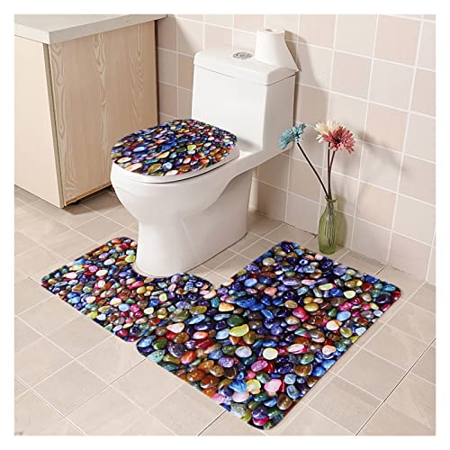 BMINO 3 Stück Set von Badezimmermatte, gemusterte Toilettenabdeckung, Fußmatte, Badezimmertürmatte, Badezimmer-Teppich Toilleten Sitz (Color : C)