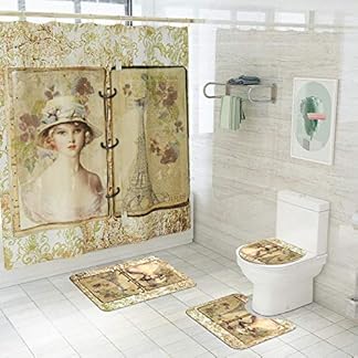 Set1 (A set of 4Pcs):1*Bath Mat 3 pieces Set+1pc*Shower curtain+hooks