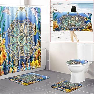 Set: Fünf Sätze (45 * 75 cm Drei-teiliges Set + 180 * 180 Badvorhang + 70 * 150 cm Badetuch)