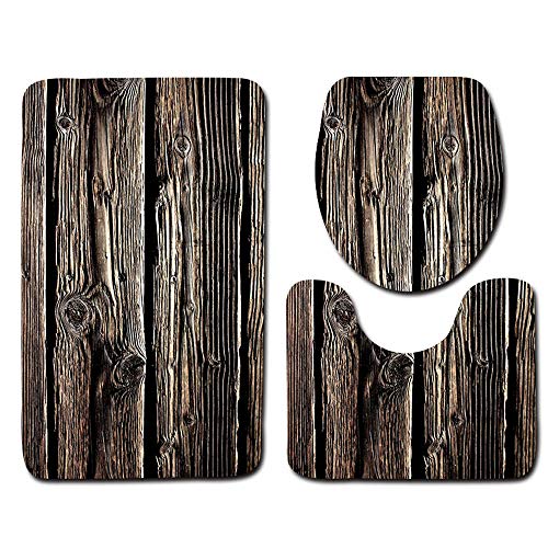 Claean-Acces-Home Wc Vorleger Mit Ausschnitt 3Pcs Creative Wood Pattern Rutschfester Toilettensitzbezug Und Teppich Badezimmer Set Dekor Tank Dekoration-Hölzerne Tür