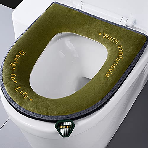Csheng WC-Sitzwärmer WC-Sitzkissen Samt Stickerei WC-Sitz Haushalts-WC-Sitz Reißverschluss WC-Sitzgriff Wasserdicht Waschbar Gesundheit WC-Sitzbezug Pad Green