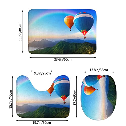 DIRYKILP Badematte + Konturmatte + Toilettendeckelbezug, Heißluftballon 3 Stück Badematte Set, mit rutschfester Klebeunterseite