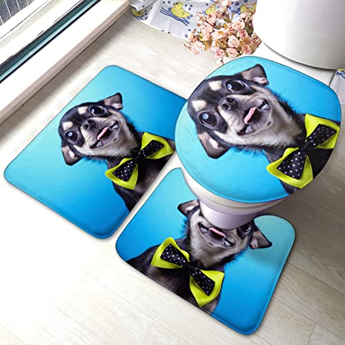 Dieses Badematten-Set verfügt über eine rechteckige Bodenmatte (60 L x 40 B), eine U-förmige rutschfeste Matte und ein O-förmiges WC-Deckelkissen. Andererseits auf der Vorderseite bedruckt.