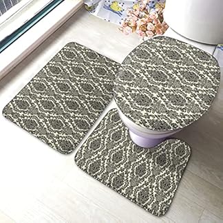 Dieses Badematten-Set verfügt über eine rechteckige Bodenmatte (60 L x 40 B), eine U-förmige rutschfeste Matte und ein O-förmiges WC-Deckelkissen. Im Gegensatz dazu auf der Vorderseite bedruckt.
