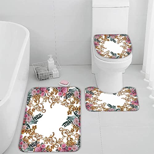 Dieses Badematten-Set verfügt über eine rechteckige Bodenmatte (60 L x 40 B), eine U-förmige rutschfeste Matte und ein O-förmiges WC-Deckelkissen. Im Gegensatz dazu auf der Vorderseite bedruckt.