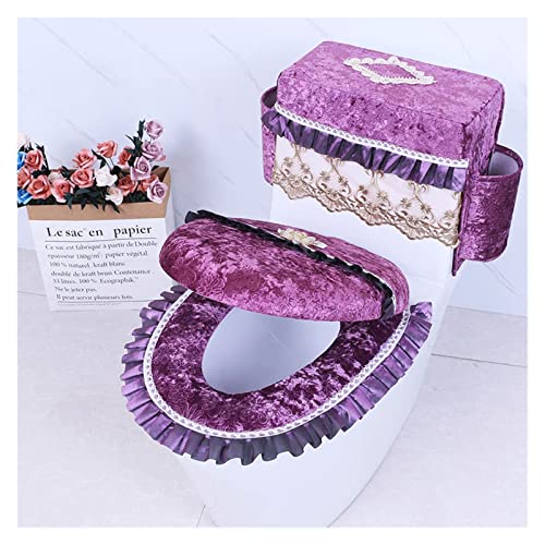 DUNBE Toilettendeckelpolster Toilettentankabdeckung mit Aufbewahrungstasche Toilettenringkissen Toilettensitzkissen (Color : Color 7-1 Set-01)