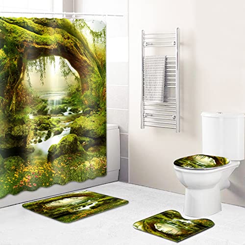 🚿【4 Teliges Set Größe】Duschvorhang wasserdicht ist 180x180cm/150x180cm, Verdickte badezimmerteppich ist 45x75cm/50x80cm, Toilettendeckelabdeckung: 35x45cm, U-förmiger Teppich: 37x45cm. Passt in die meisten Standardbäder. Badezimmer set wird eine wunderbare Dekoration für Ihr Badezimmer sein!