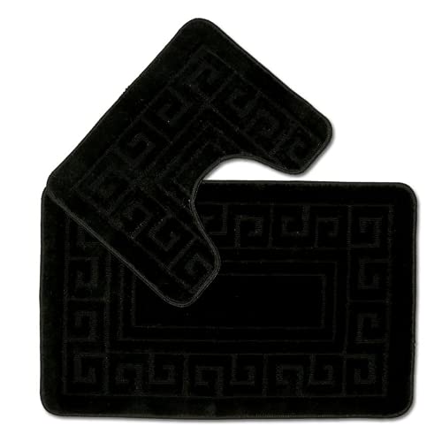 EDS rutschfeste Badematte im griechischen Stil, Bademattenset 2-teilig, enthält 1 Badematte (50 x 80 cm) und einen WC-Vorleger (50 x 40 cm) – Schwarz