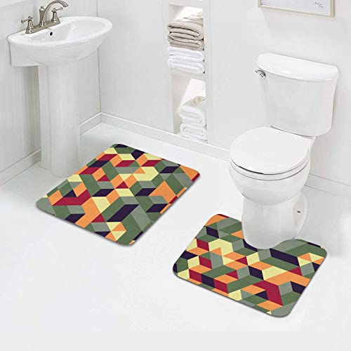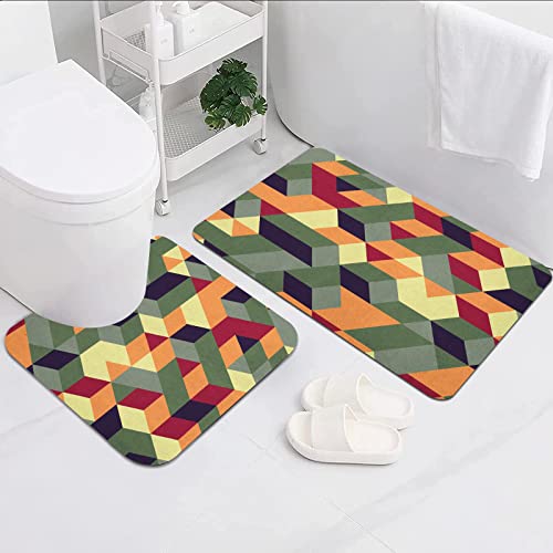Zeitgemäßes geometrisches Design, 0,6 Taxe hohe, Ideal für Badezimmer, Waschtisch, Ferienhaus, Hauptbadezimmer, Kinderbad, Gästesuite. Das Paket beinhaltet einen 50×40 cm WC Teppich und eine 50×80 cm Badematte.