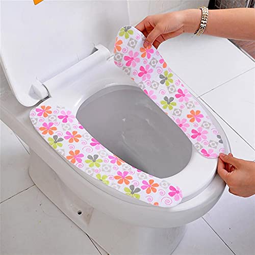 FJZFXKZL WC Sitzbezüge 5 Paar-Badezimmer WC-Sitzkissen Cartoon-Stil Sticky Washroom Warmer Waschbar Gesundheit WC-Sitz Deckelbezug Pad (zufällige Farbe)