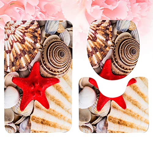 Hemoton 1 Set mit 3 Badezimmeraccessoires, 3D-Muschel-Motiv, Bodenmatte, WC-Vorleger, Deckelbezug (80 x 50 cm)