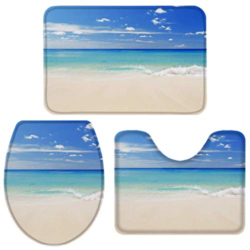 JOOCAR 3-teiliges Set rutschfester WC-Vorleger + WC-Deckelbezug + Badvorleger, tropischer Strand, blauer Himmel, weicher…