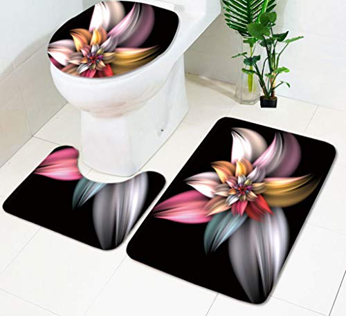 JZZCIDGa Badematte 3-Teilige Sets Buntes Blumenmuster Toilettendeckelbezug Weiche Dusche Badteppiche Konturmatte Dusche Toilette Badteppich Teppich