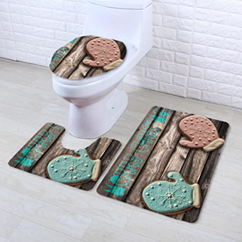 Kjhds 3D Landschaft Toilettenmatte 3-teiliges Set Bad Absorbent rutschfeste Bodenmatte Teppich Flanell Weiche Badematte…