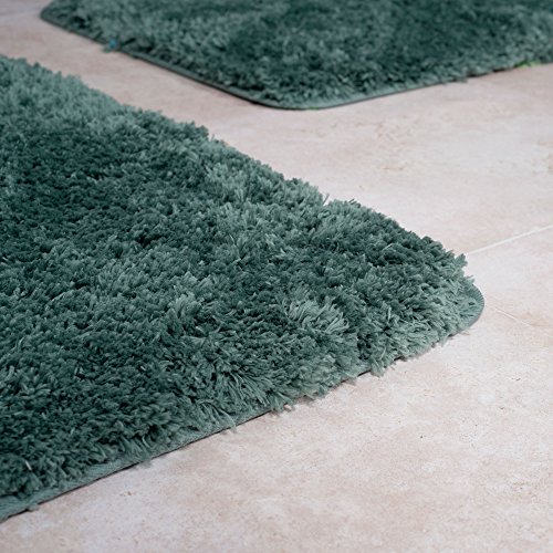 Lavish Home 3-teiliges Badezimmerteppich-Set – Anti-Rutsch-Badematten-Set mit Badteppich, Konturenmatte und WC…
