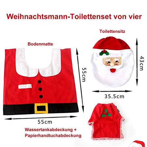 Leerroa Weihnachten Toilettensitzbezug,Weihnachts-WC-Dekoration,Toilettenvorleger Badezimmer Set für Weihnachtsdekoration-3 Stück