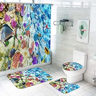 Einzigartiges Design: farbenfrohes und wunderschönes 3D-Druckmusterdesign, elegante Dekoration, Unter dem Meer,Unterwasser Korallenriff Fischverleihen Ihrem Badezimmer Glanz,Treten Sie ein in die Unterwasserwelt.