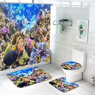 Einzigartiges Design: farbenfrohes und wunderschönes 3D-Druckmusterdesign, elegante Dekoration, Unter dem Meer,Unterwasser Korallenriff Fischverleihen Ihrem Badezimmer Glanz,Treten Sie ein in die Unterwasserwelt.