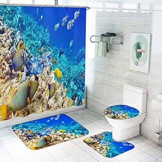 Einzigartiges Design: farbenfrohes und wunderschönes 3D-Druckmusterdesign, elegante Dekoration, Unter dem Meer,Unterwasser Korallenriff Fischverleihen Ihrem Badezimmer Glanz,Treten Sie ein in die Unterwasserwelt.