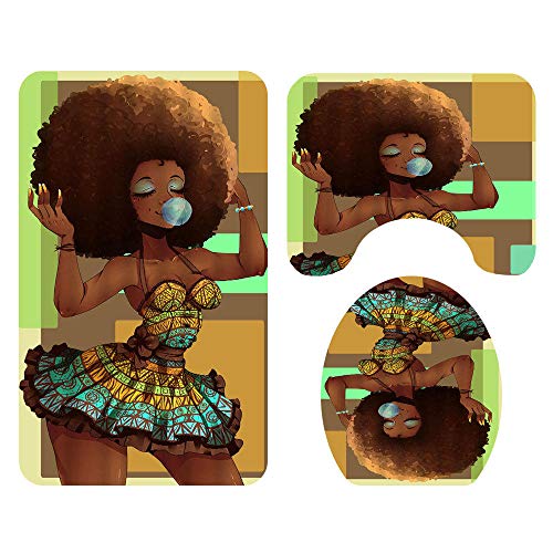 N / A 4 Stück Badematten Set rutschfest Ständer Unterstützung,Persönlichkeit Girly Woman Pattern Dekorieren Duschvorhang…