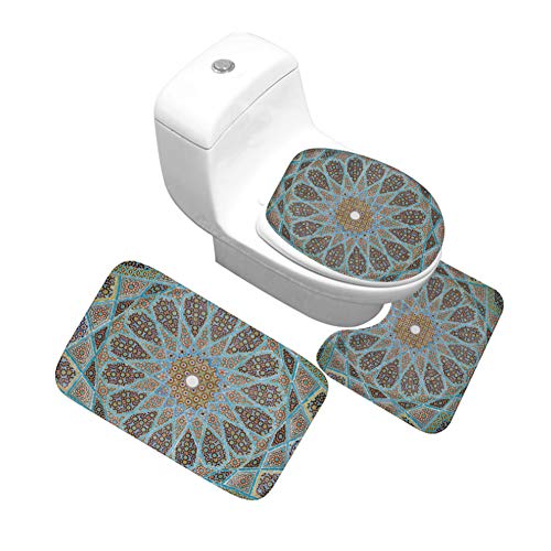 NANANA Badezimmer Badematte 3 Teilig Set, Klassisch Blumenbeschaffenheit Saugfähig Badteppiche für Die Toilette, Badvorleger Badgarnitur WC Vorleger,d,L
