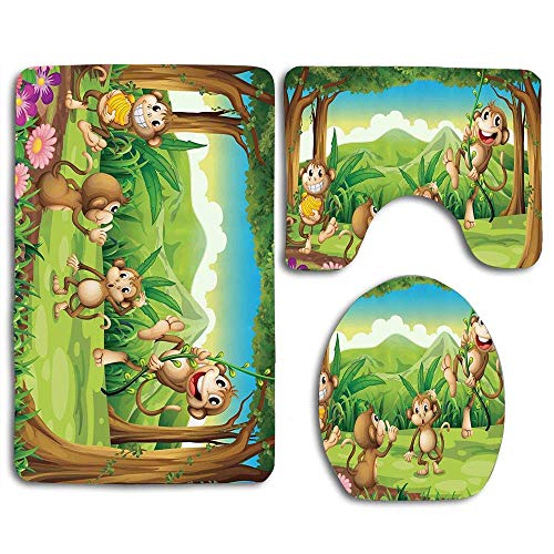 Not Applicable Digital Dot Featured Monkey Face Portrait mit kleinen geometrischen Runden Dekorative 3-teilige Badteppich-Set Anti-Rutsch-Badteppich + U-förmige Toilettenmatte + Toilettensitzbezug