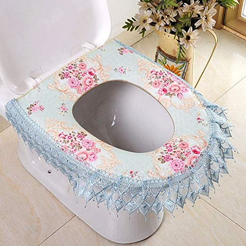 OLIMY Waschbares Toilettensitzkissen Gepolsterte Toilettenunterlage Winter-Toilettensitzbezug Pads Toilettensitzkissen Warmer Baumwoll-Toilettensitz Toilettensitzbezug (Color : Blue) (Color : Blue)
